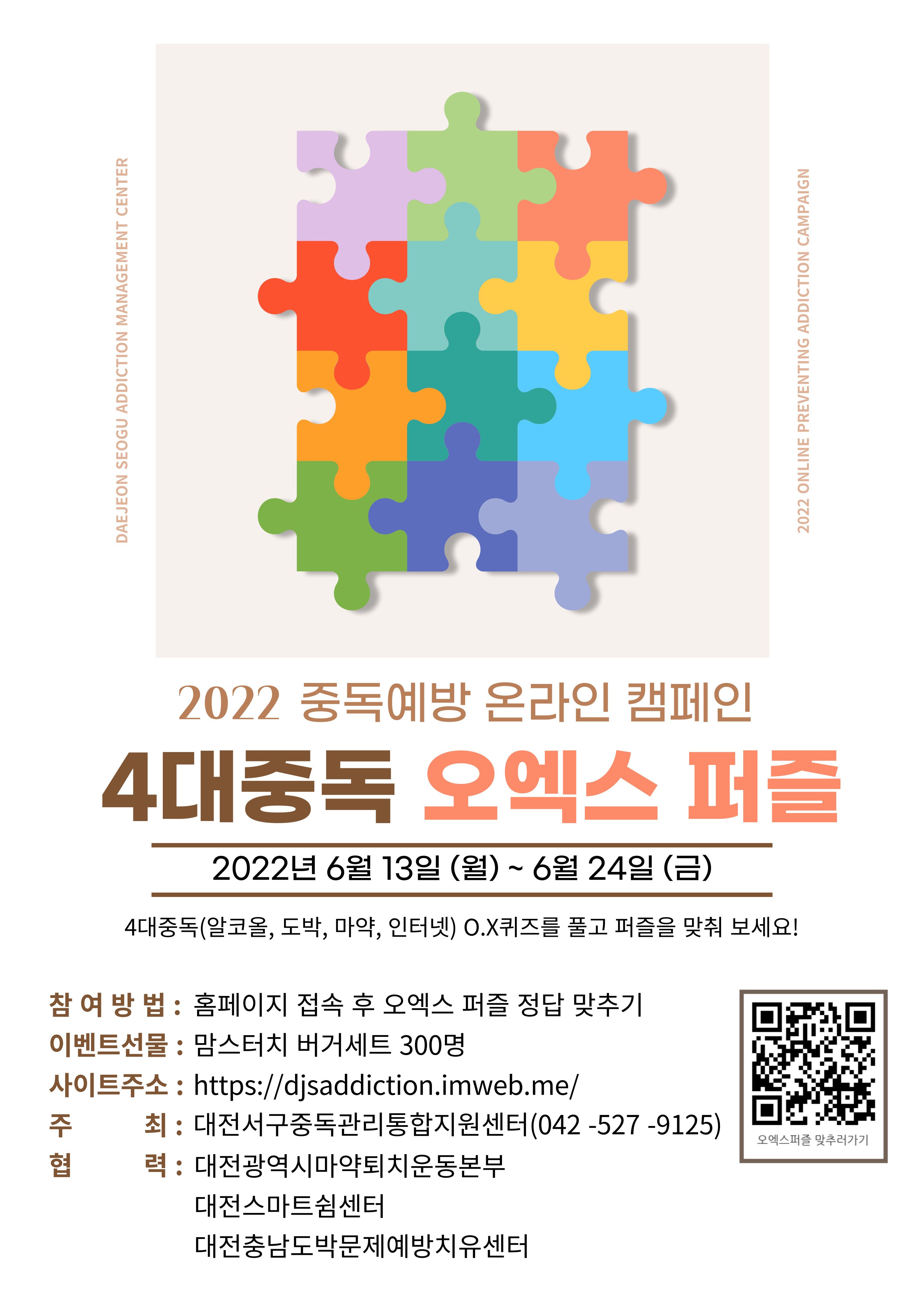 2022년 중독예방 온라인 캠페인 [4대중독 오엑스 퍼즐]을 실시하여 포스터를 발송해 드립니다.
