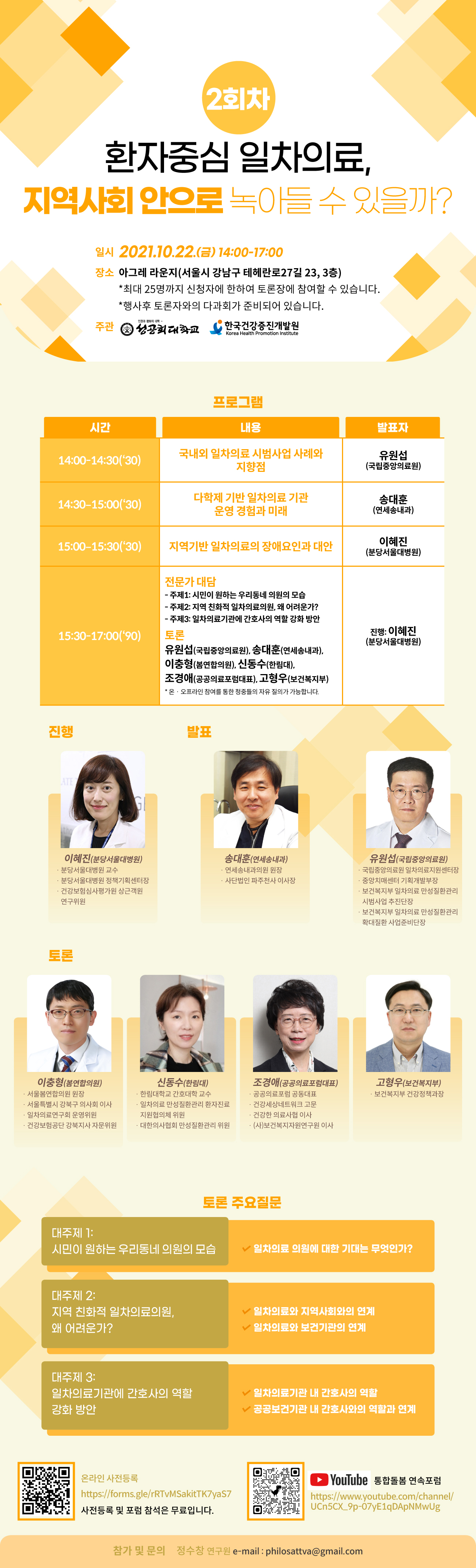 [지역사회 통합돌봄] 연속포럼 2회차 : 환자중심 일차의료, 지역사회 안으로 녹아들 수 있을까?