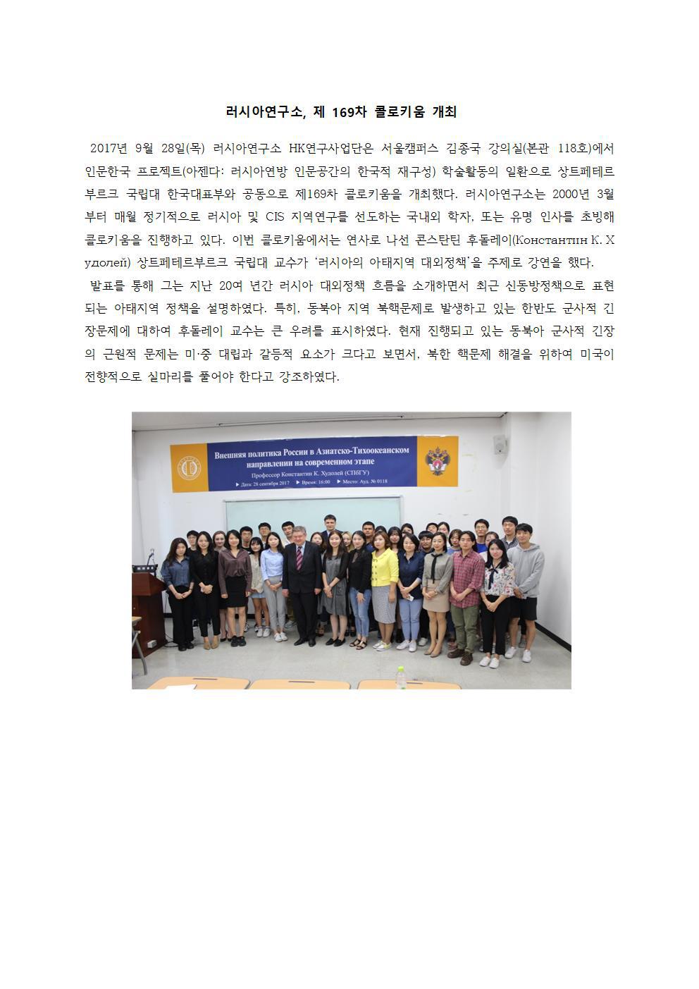 제170차 Changes in International Relations in Northeast Asia and Russian-Korean Society