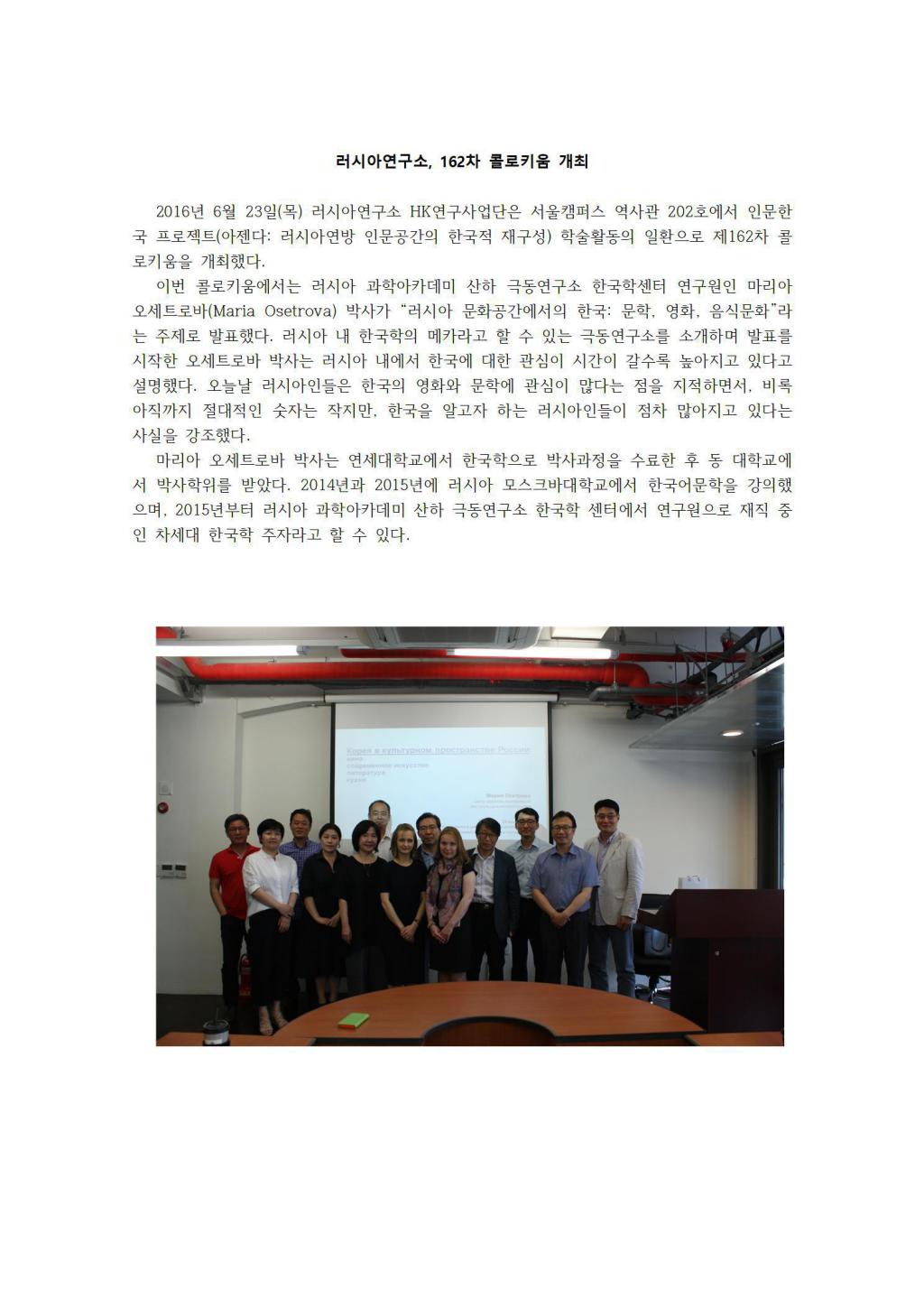제162차 Korea in Russian Cultural Space: Literature, Movie and Food