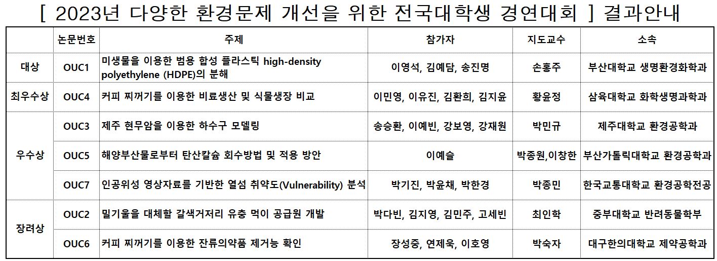 [대회결과안내]2023년 다양한 환경문제 개선을 위한 전국 대학생 경연대회