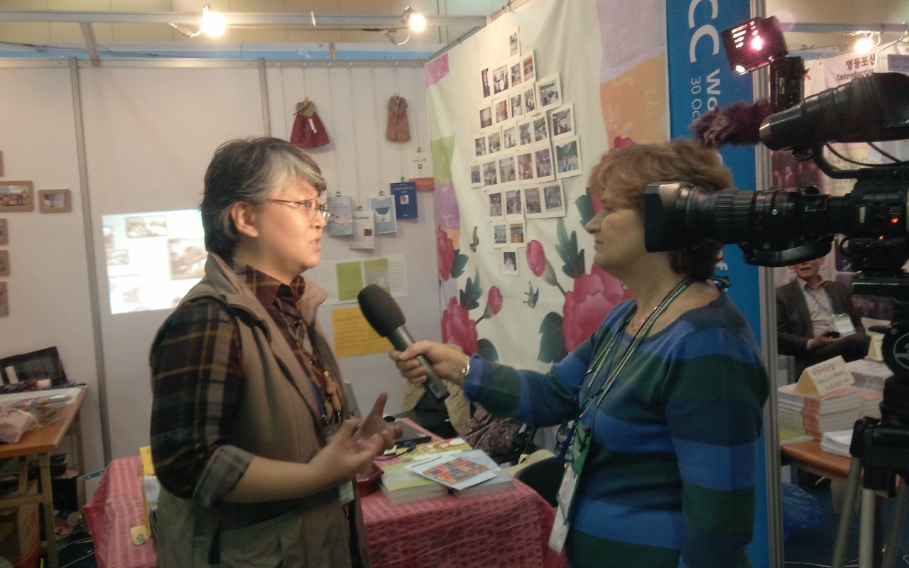 여신협 부스에서, 이태리 TV 관계자와 인터뷰