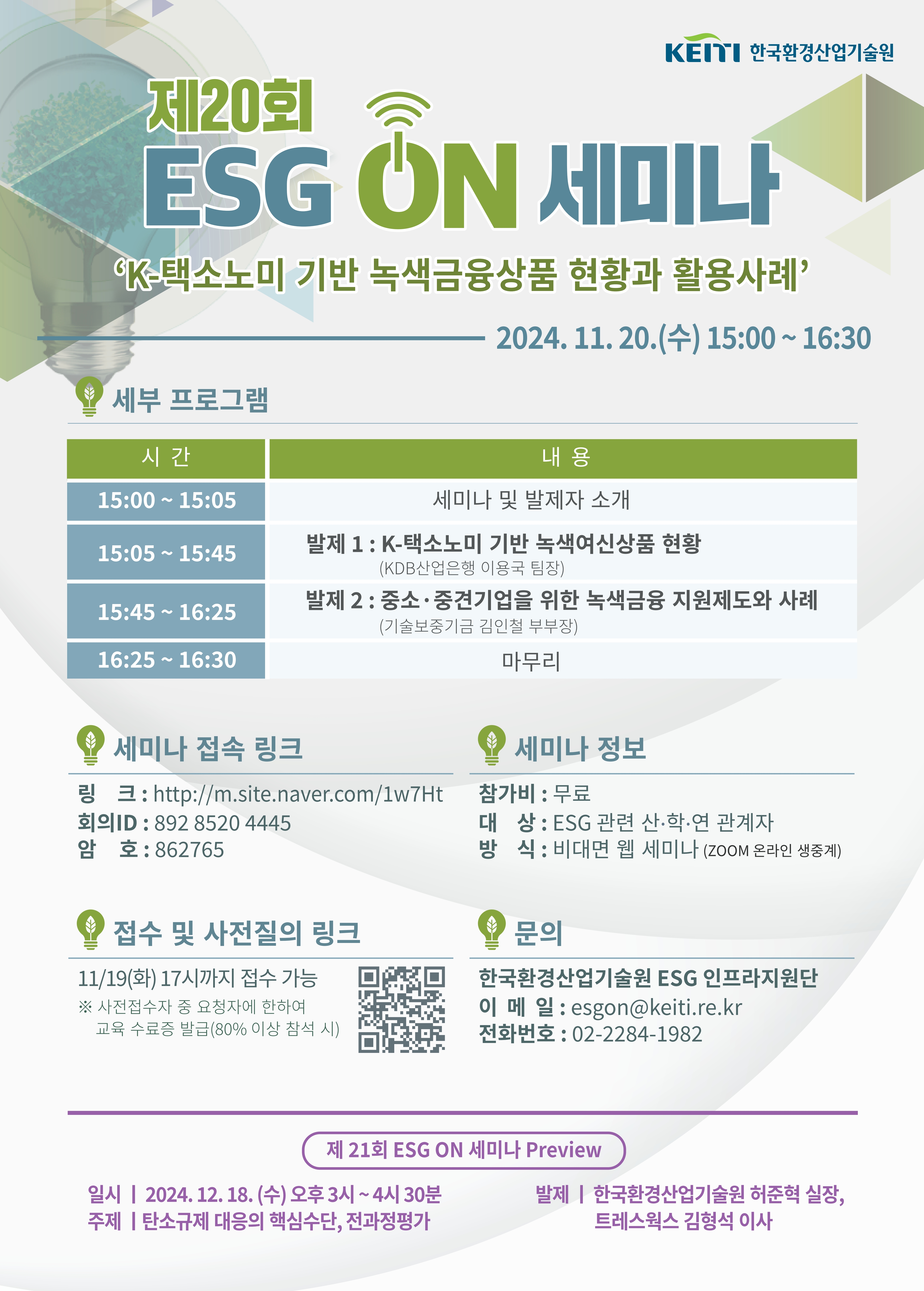 [한국환경산업기술원] 제20회 ESG ON 세미나 개최 안내