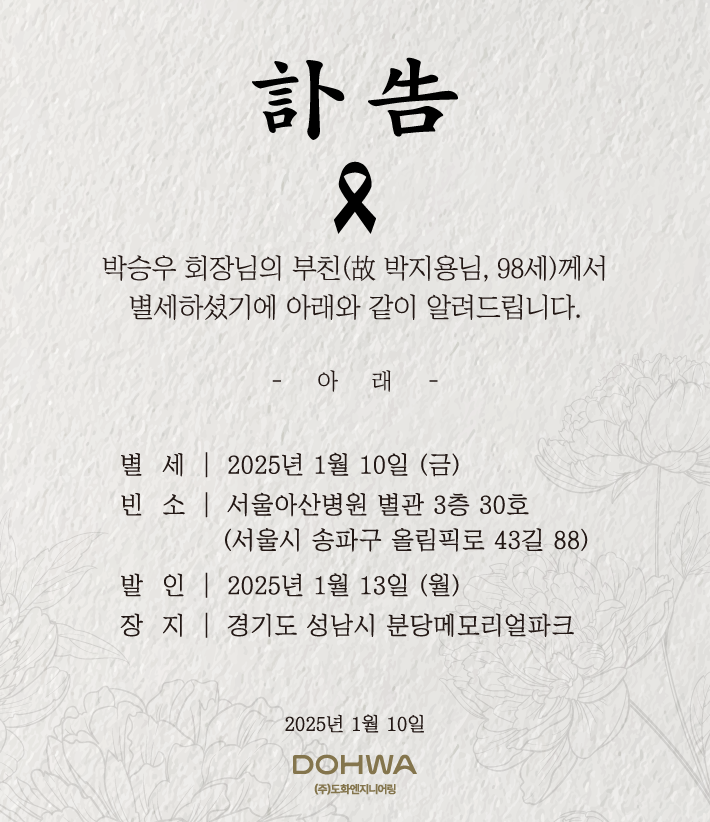 ▶◀[부고] 도화엔지니어링 박승우 회장 부친상