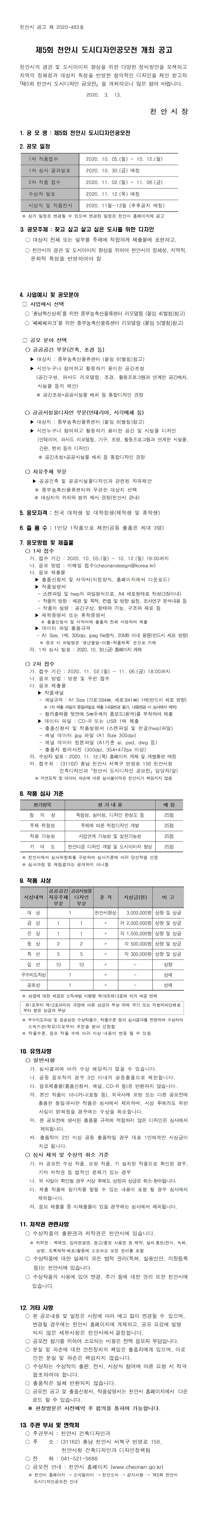 제5회 천안시 도시디자인공모전 개최 공고 안내