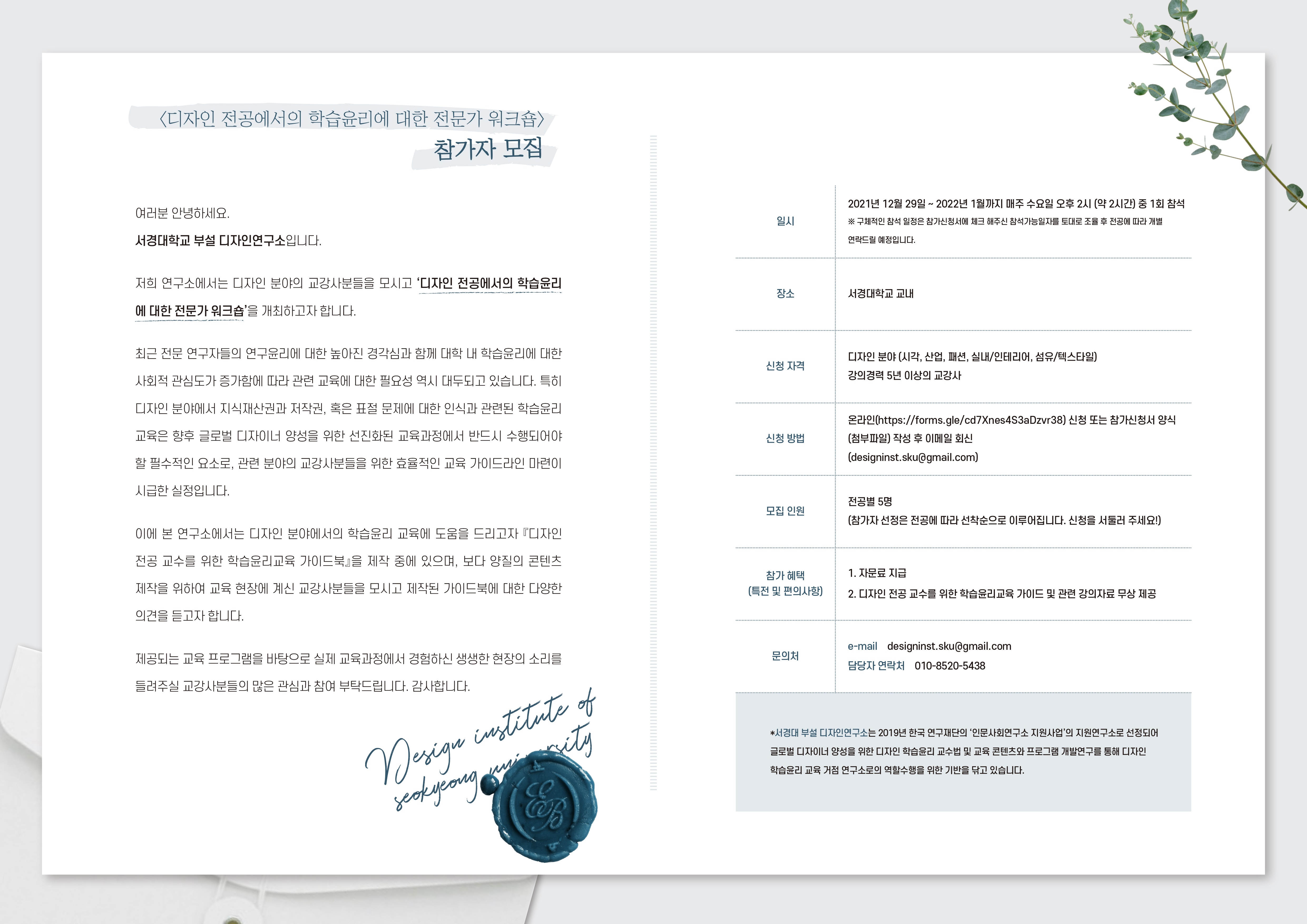 <디자인 전공에서의 학습윤리에 대한 전문가 워크숍> 참가자 모집
