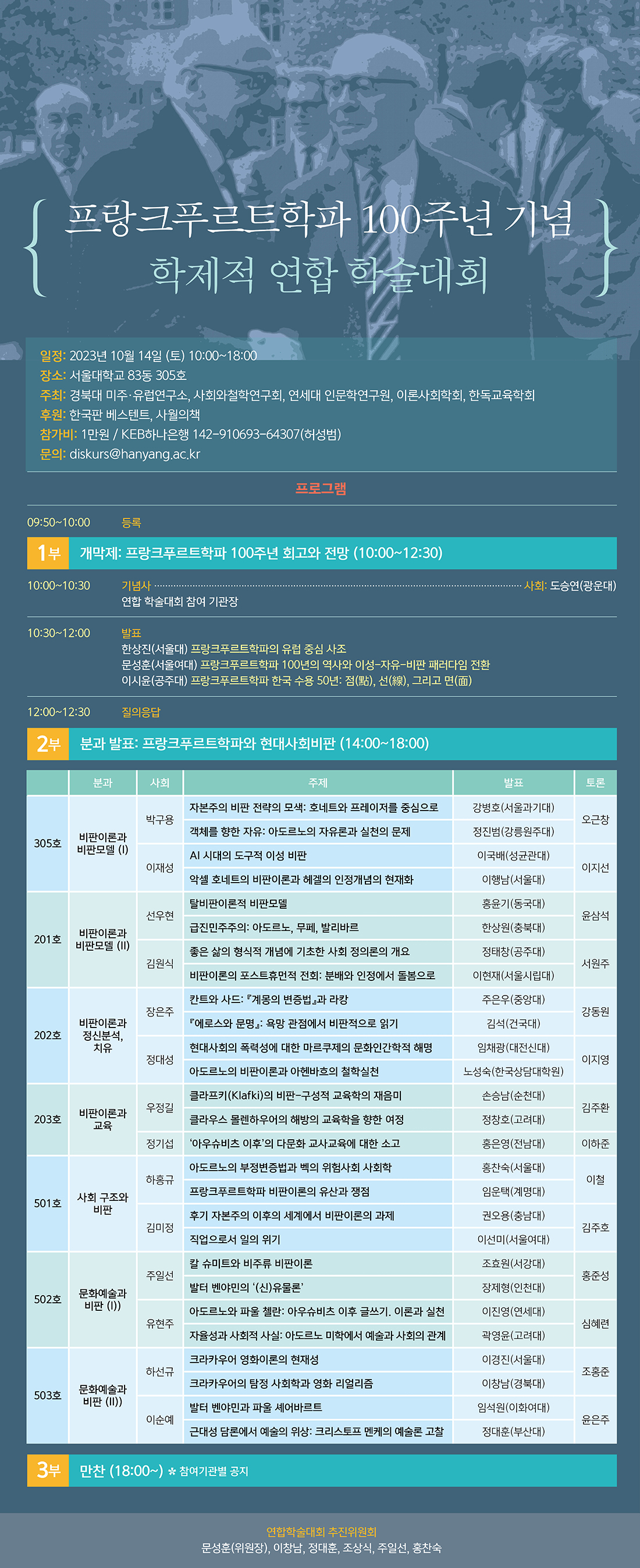 프랑크푸르트학파 100주년 기념 학제적 연합 학술대회를 우리 학회가 공동으로 개최하게 되었습니다.
