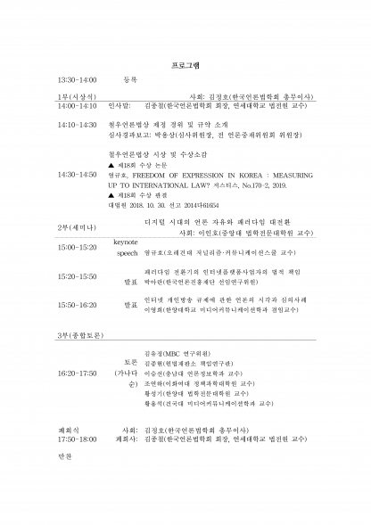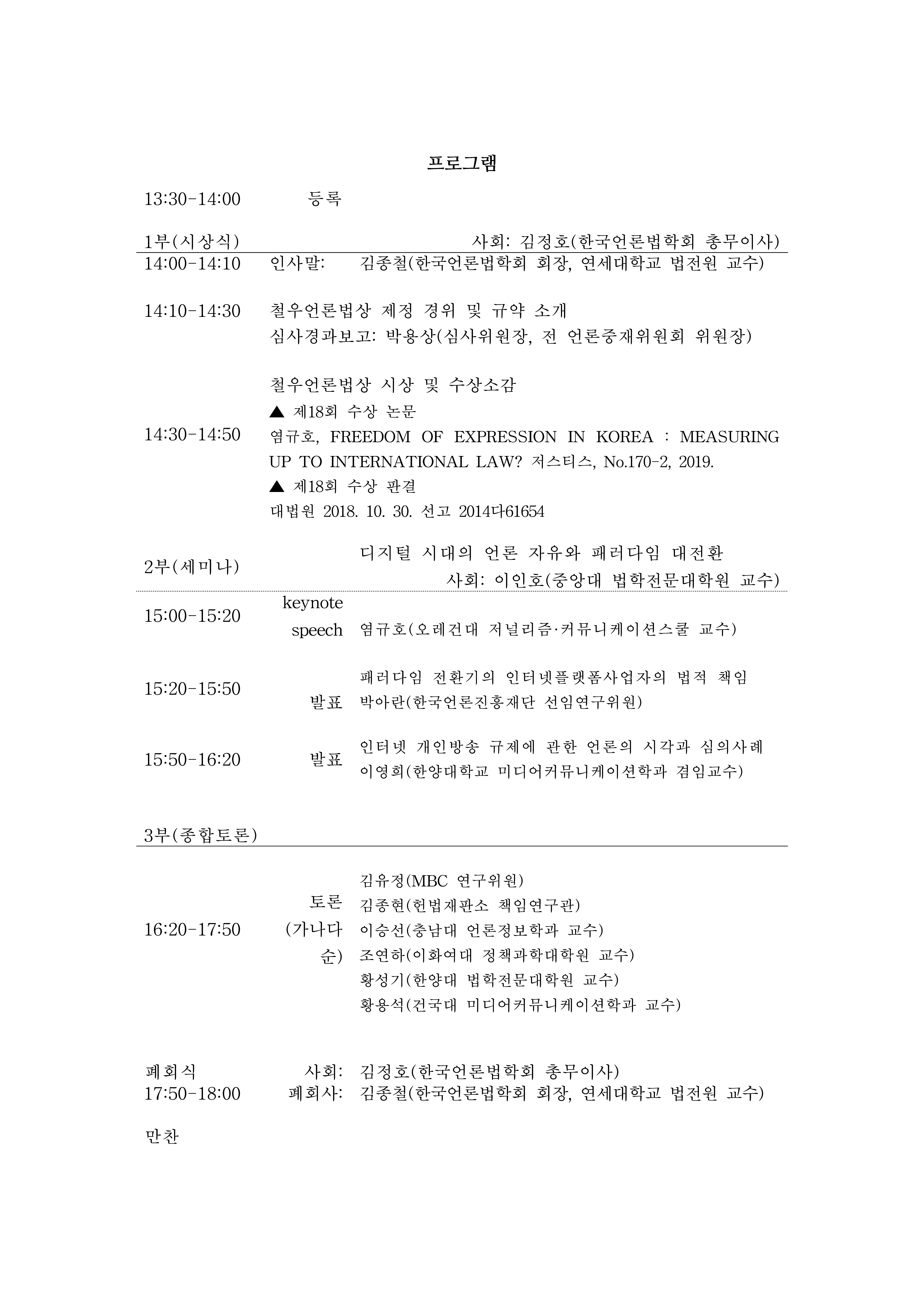 [한국언론법학회] 제18회 철우언론법상 시상식 및 기념 학술세미나(8.30) 안내