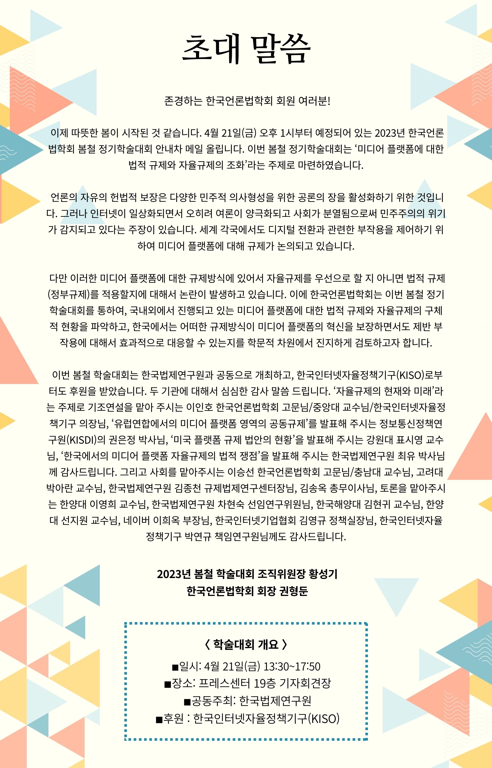 [공지] 한국언론법학회 2023년 봄철 정기학술대회 개회