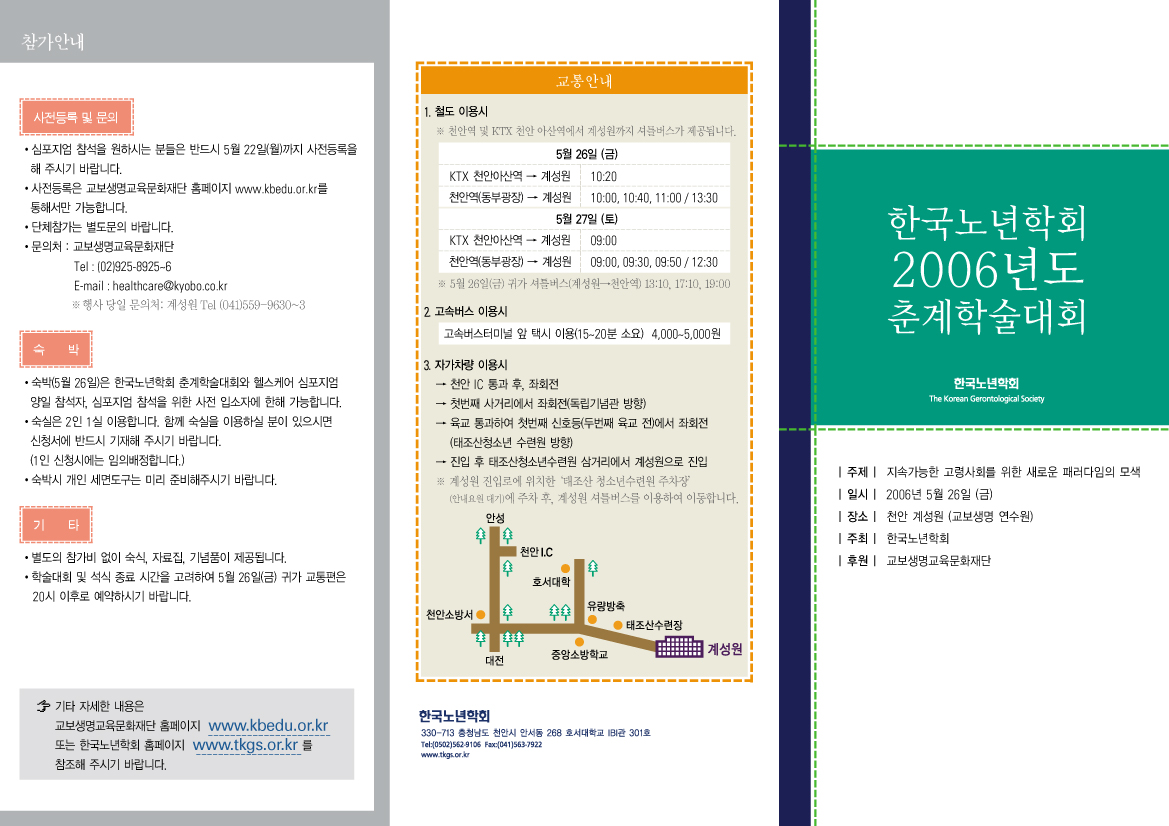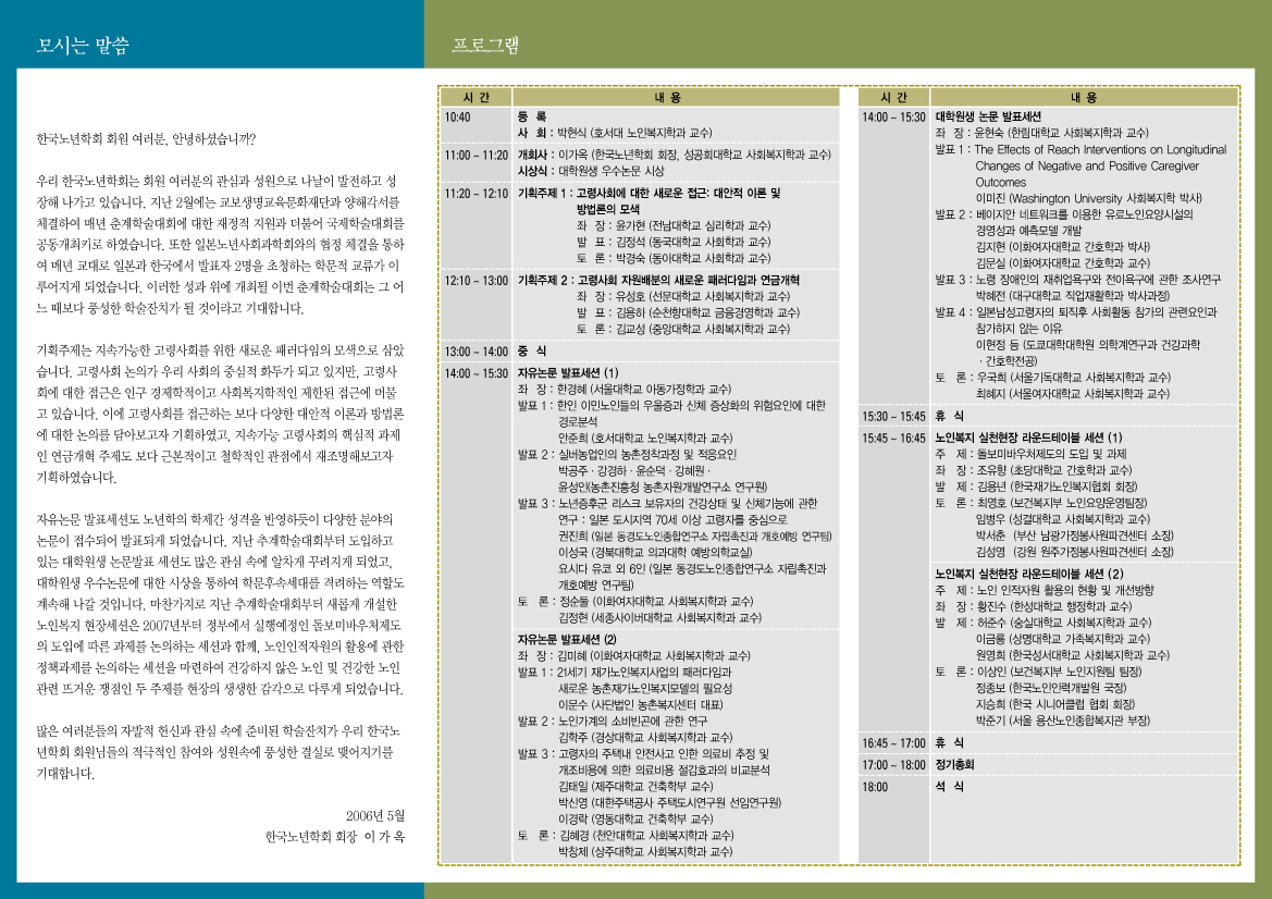 이라는 주제로 한국노년학회 2006년도 춘계학술대회를 개최합니다.