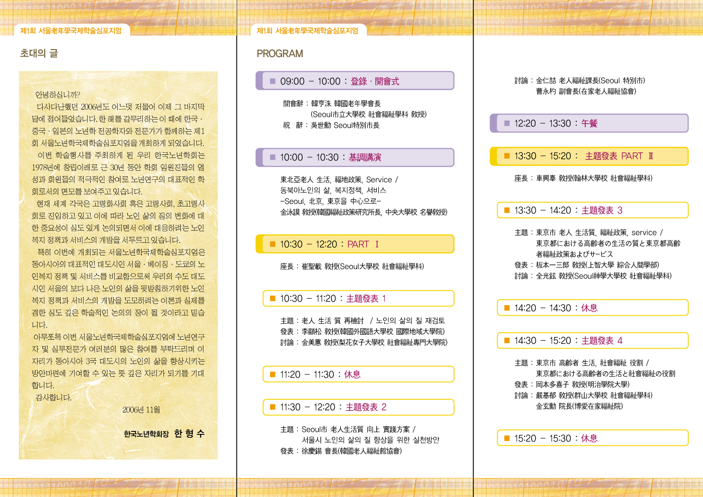 주제 : 서울, 베이징, 도쿄의 노인의 삶과 사회복지정책 및 서비스