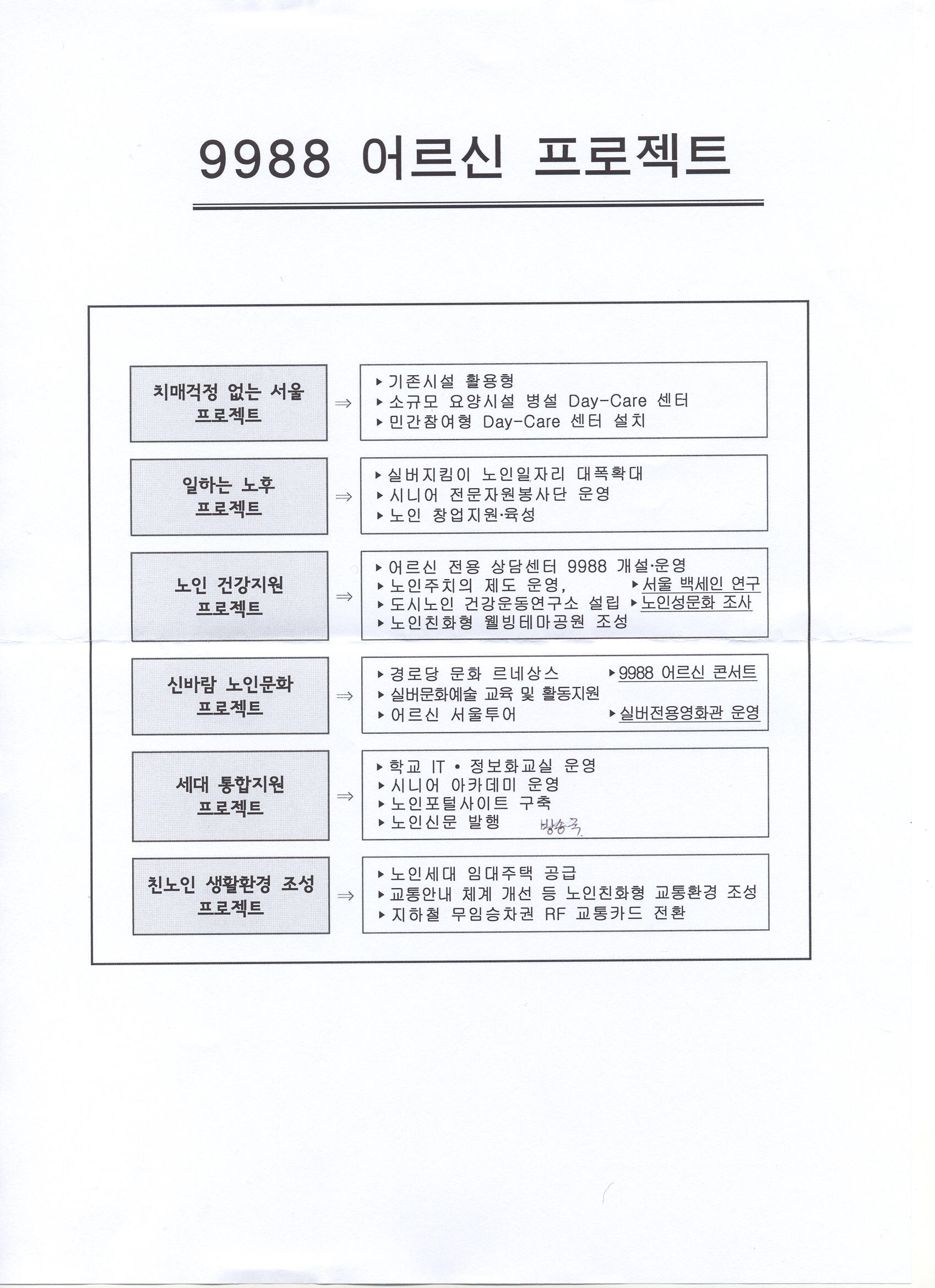 서울특별시시 노인관련 사업 "9988 프로젝트(첨부파일)"을