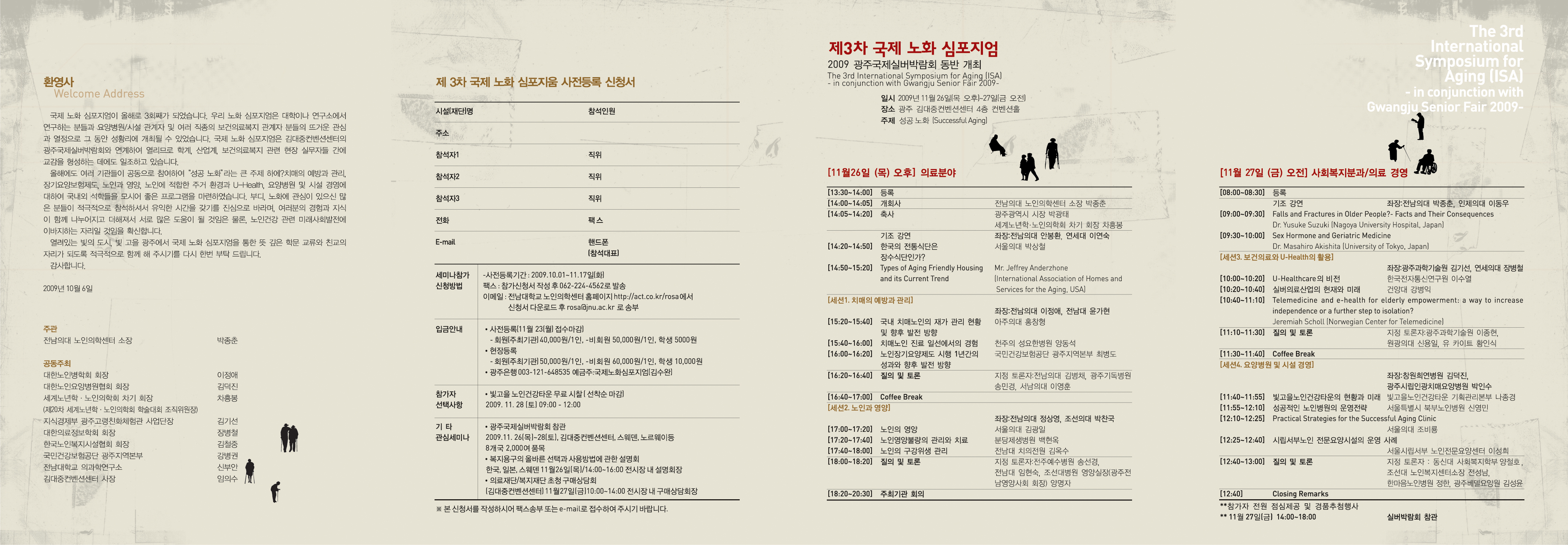 제3회 국제노화심포지엄 및 2009 광주국제실버박람회 참가 안내 공지사 (2009-11-11)