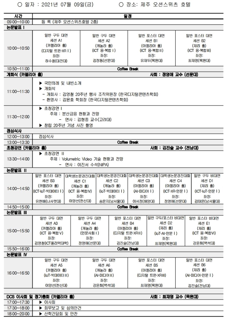 2021년 한국디지털콘텐츠학회 학술발표대회 및 대학생논문경진대회 프로그램 공지 드리니