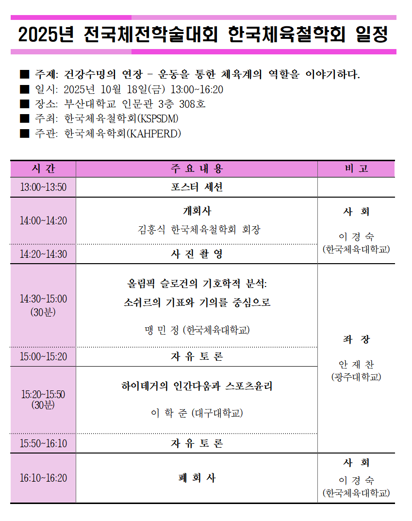 3. 한국체육철학회: 14시, 인문관 3층 308호