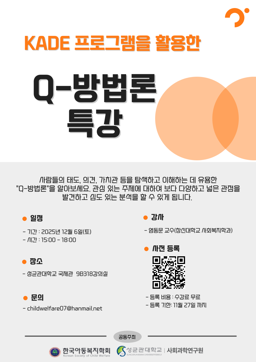 [한국아동복지학회] 12월 6일 Q-방법론 특강 홍보