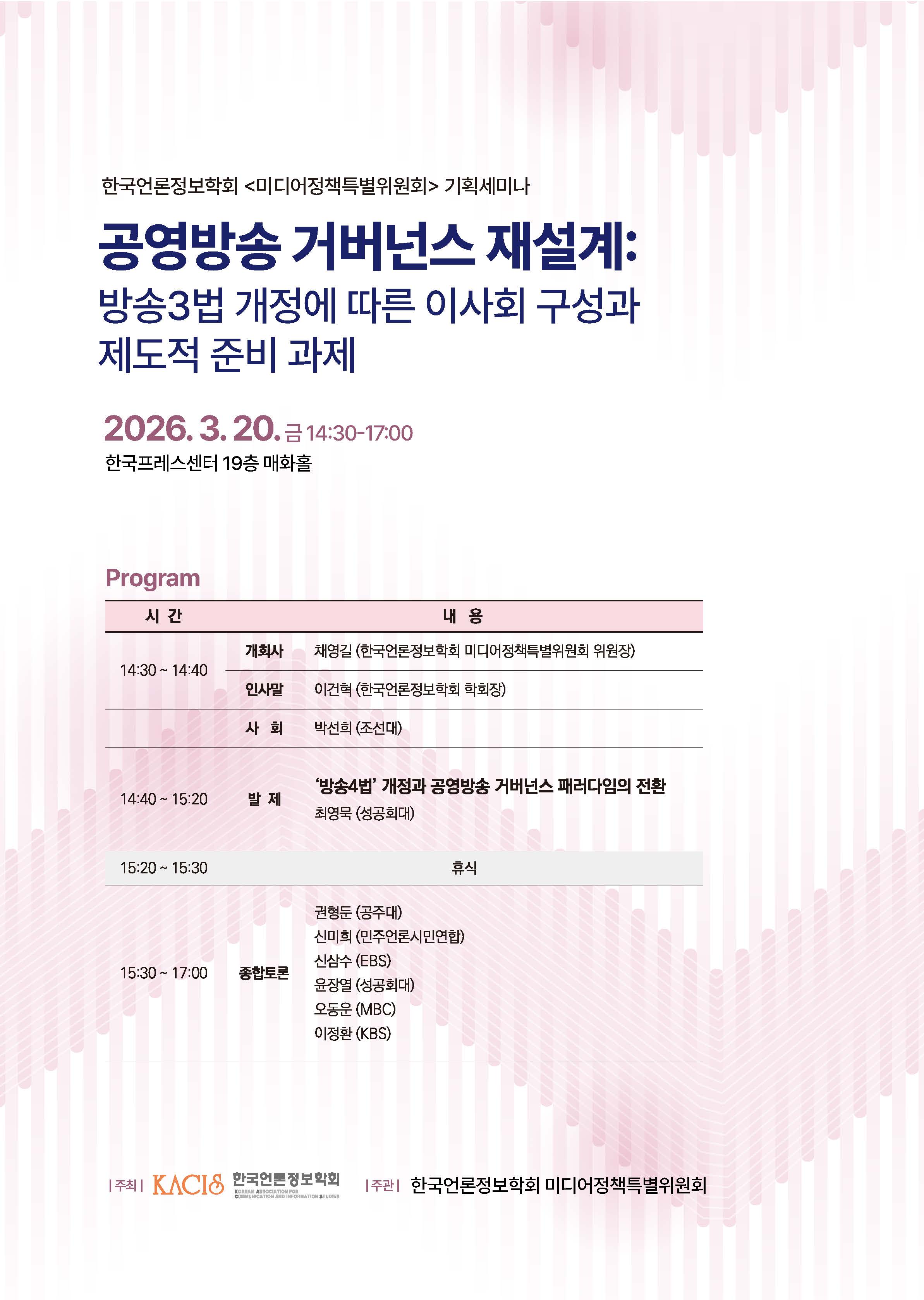 - 주관: 한국언론정보학회 미디어정책특별위원회