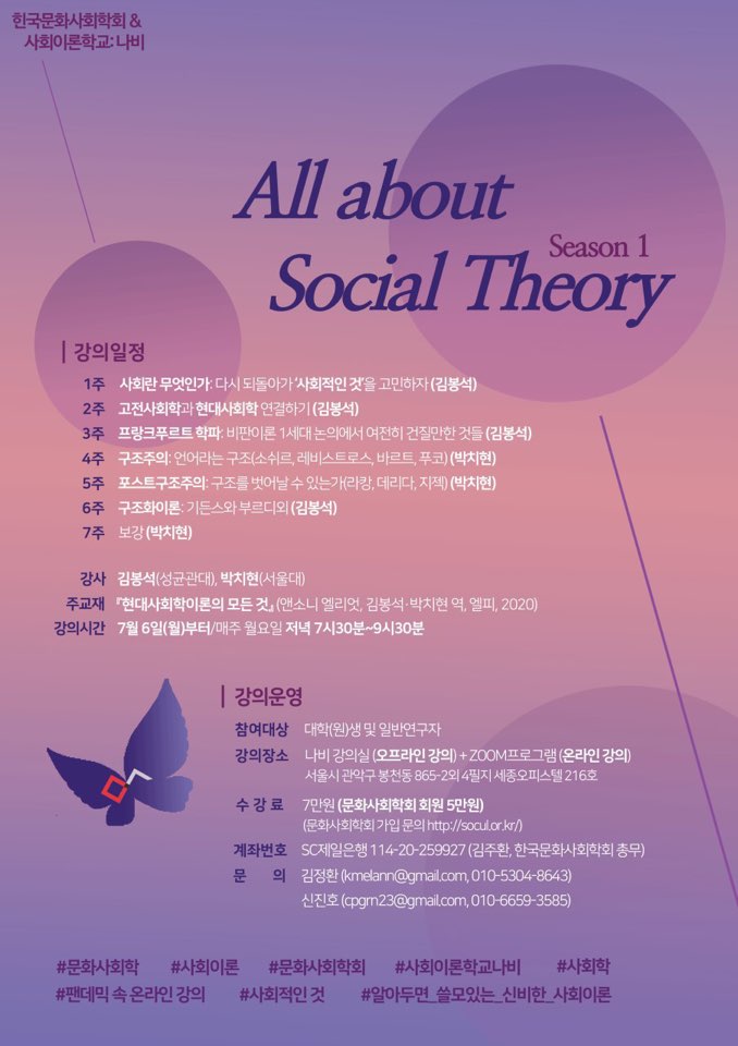 <한국문화사회학회> <사회이론학교:나비> 공동기획 사회이론강좌