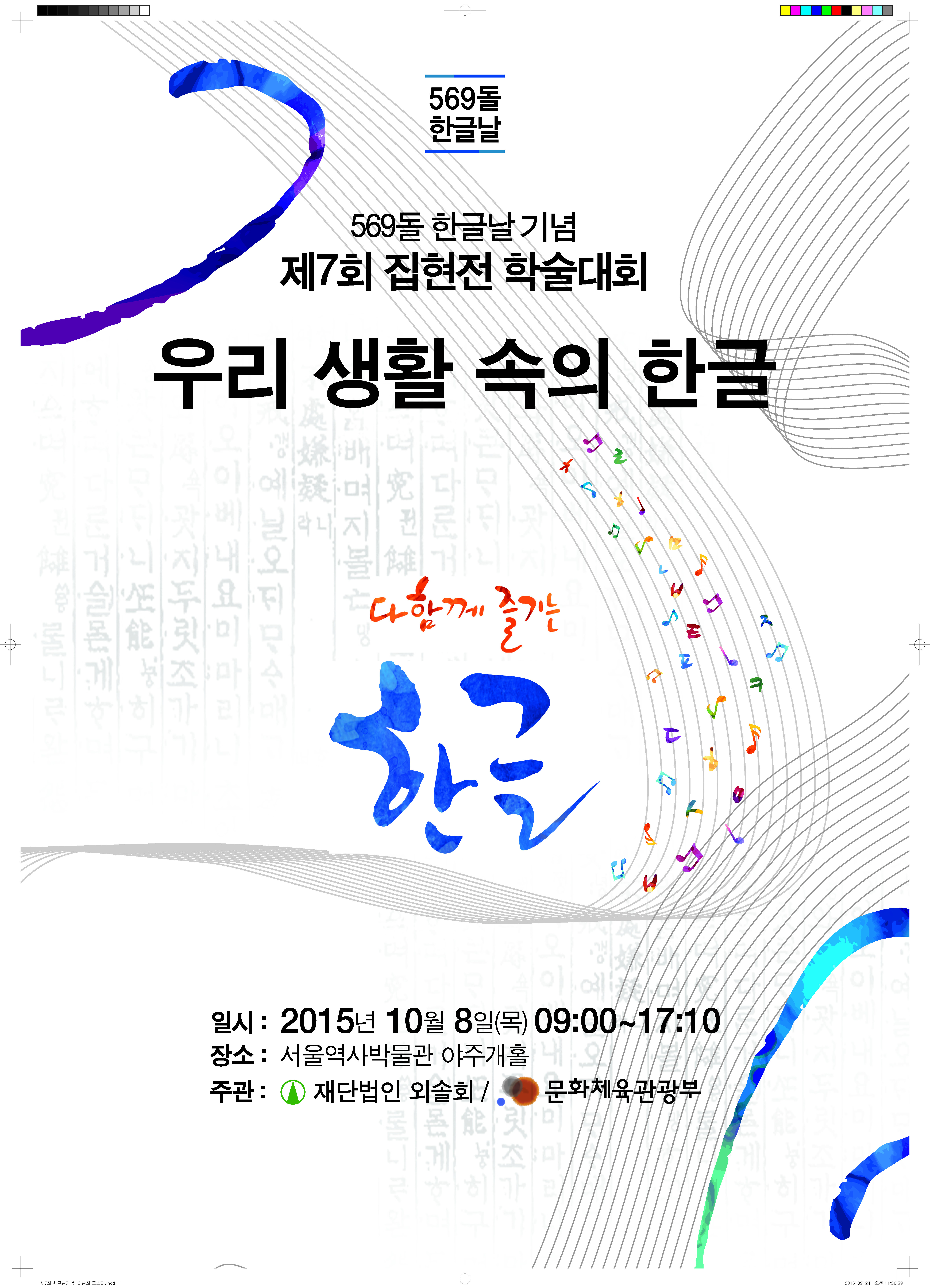 569돌 한글날 기념 제7회 집현전 학술대회 주제: '우리 생활 속의 한글' |