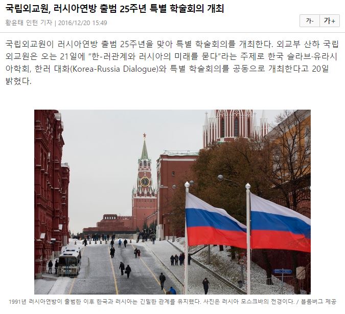 국립외교원이 러시아연방 출범 25주년을 맞아 특별 학술회의를 개최한다. 외교부 산하 국립외교원은 오는 21일에 “한-러관계와 러시아의 미래를 묻다”라는 주제로 한국 슬라브·유라시아학회, 한러 대화(Korea-Russia Dialogue)와 특별 학술회의를 공동으로 개최한다고 20일 밝혔다.