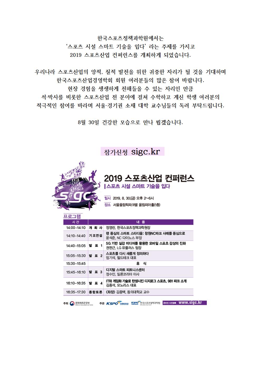 2019 체육인 결의대회 및 제31회 88서울올림픽기념 서울국제스포츠컨퍼런스 참가등록 및 논문투고 기간 연장 안내