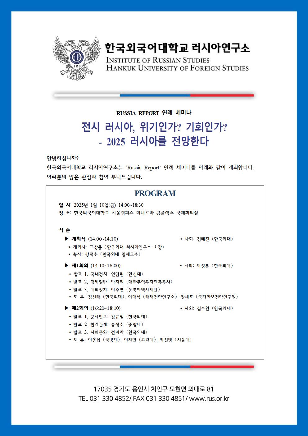 Russia Report 연례 세미나 개최, '전시 러시아, 위기인가? 기회인가?': 2025 러시아를 전망한다'