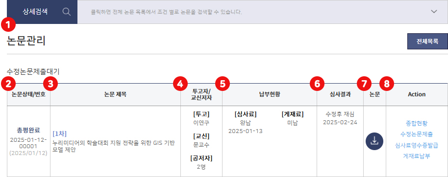 수정논문 제출 여부나 심사결과 명칭은 설정에 따라 상이할 수 있습니다.