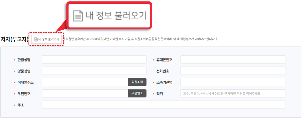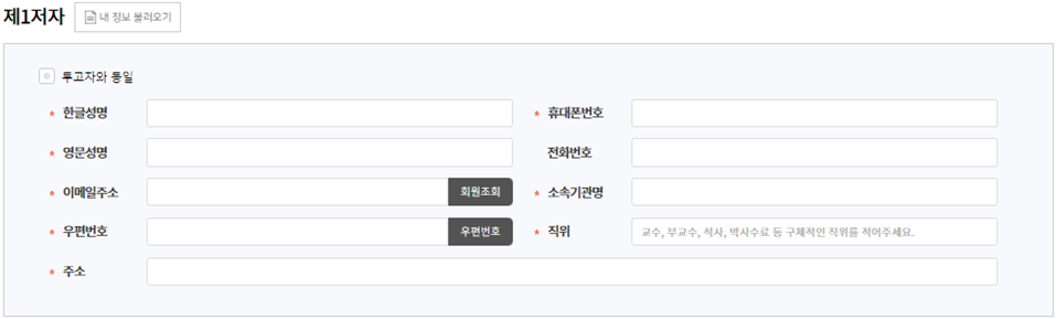 한 번 입력한 정보는 투고시스템 상에서는 기록이 남지만, 홈페이지 회원정보에는 반영되지 않는 점 유의하시기 바랍니다.