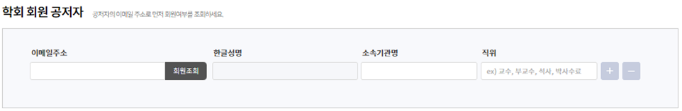 학회 회원 공저자 영역만 있다면 교신저자와 공저자도 홈페이지 회원가입이 필수입니다.