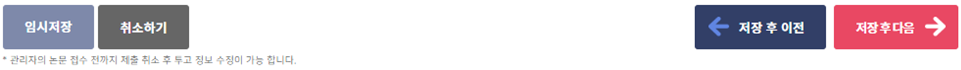 6. 임시저장 또는 저장 후 다음 버튼을 클릭하여 저자 등록 단계를 마무리합니다.