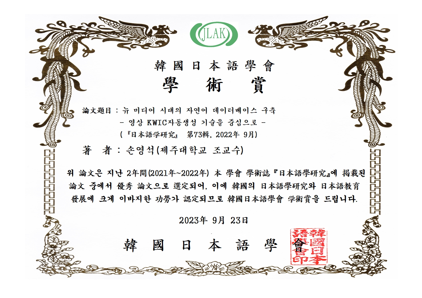 ◆ 受賞者孫栄奭(濟州大學校 助敎授)