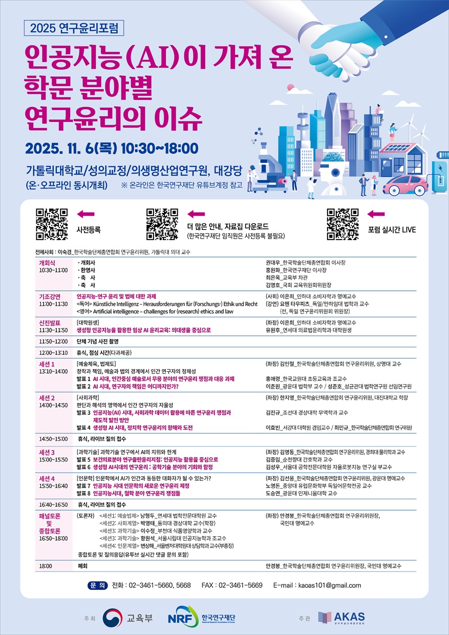 2025년 연구윤리포럼을 아래과 같이 개최하오니, 많은 참여를 부탁드립니다.