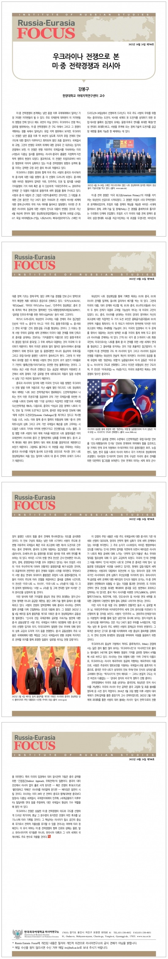 제708호 우크라이나 전쟁으로 본 미·중 전략경쟁과 러시아