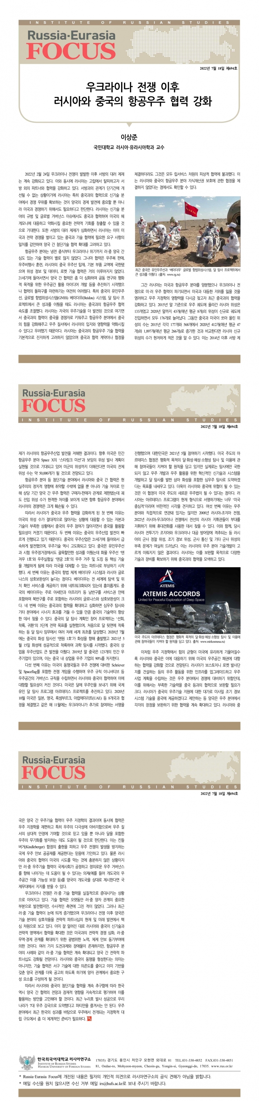 제694호 우크라이나 전쟁 이후 러시아와 중국의 항공우주 협력 강화