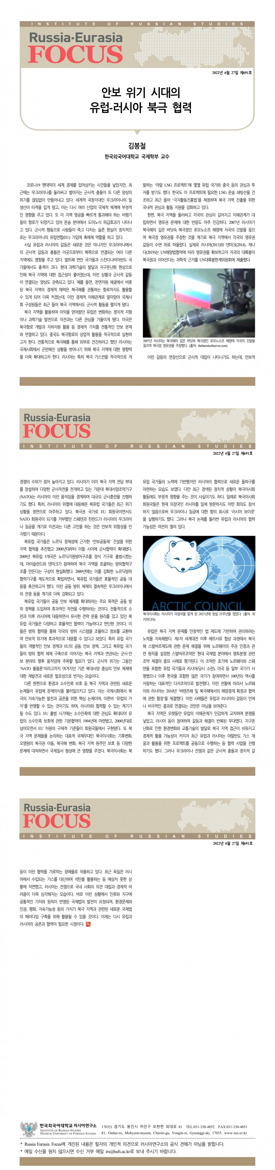 제691호 안보 위기 시대의 유럽-러시아 북극 협력