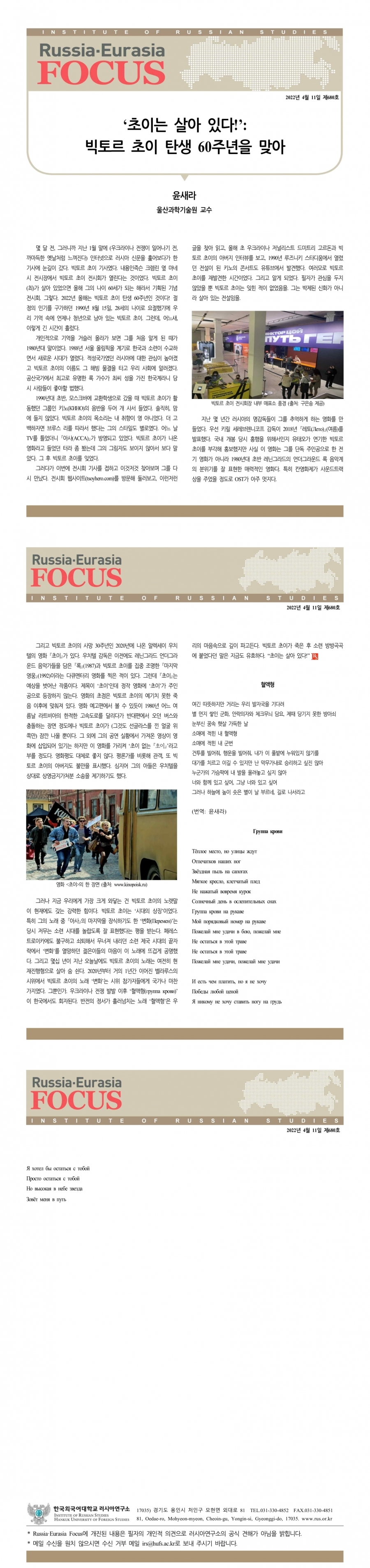 제680호 ‘초이는 살아 있다!’: 빅토르 초이 탄생 60주년을 맞아