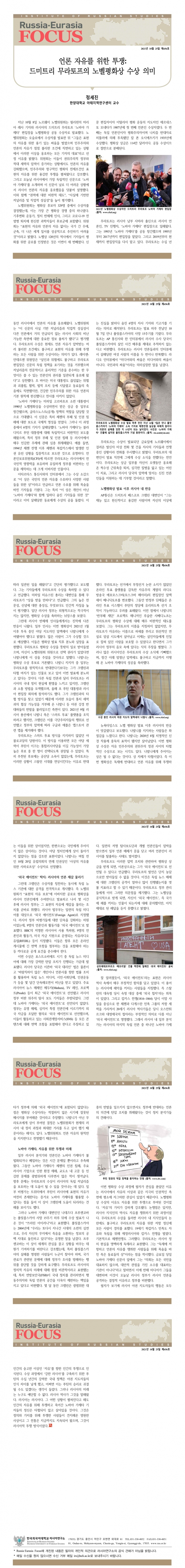 제656호 언론 자유를 위한 투쟁: 드미트리 무라토프의 노벨평화상 수상 의미