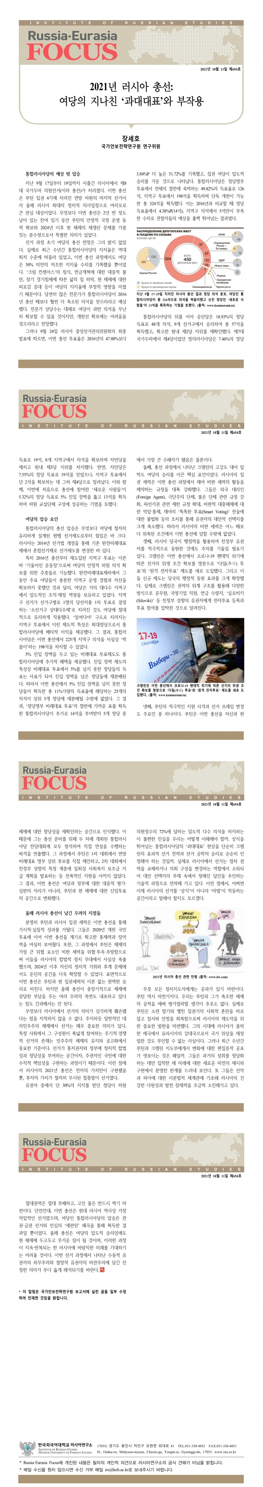 제654호 2021년 러시아 총선: 여당의 지나친 ‘과대대표’와 부작용