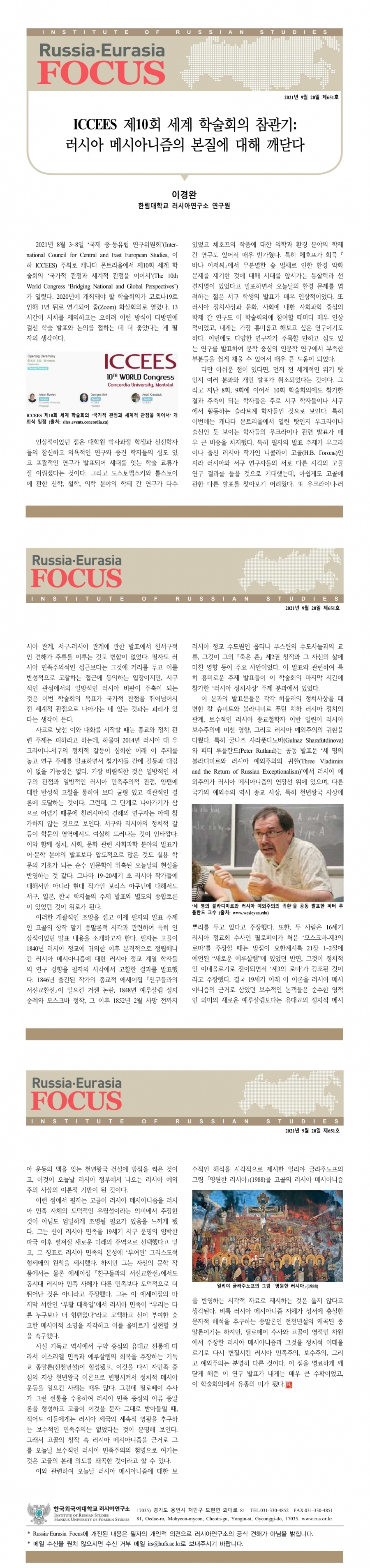 제651호 ICCEES 제10회 세계 학술회의 참관기: 러시아 메시아니즘의 본질에 대해 깨닫다