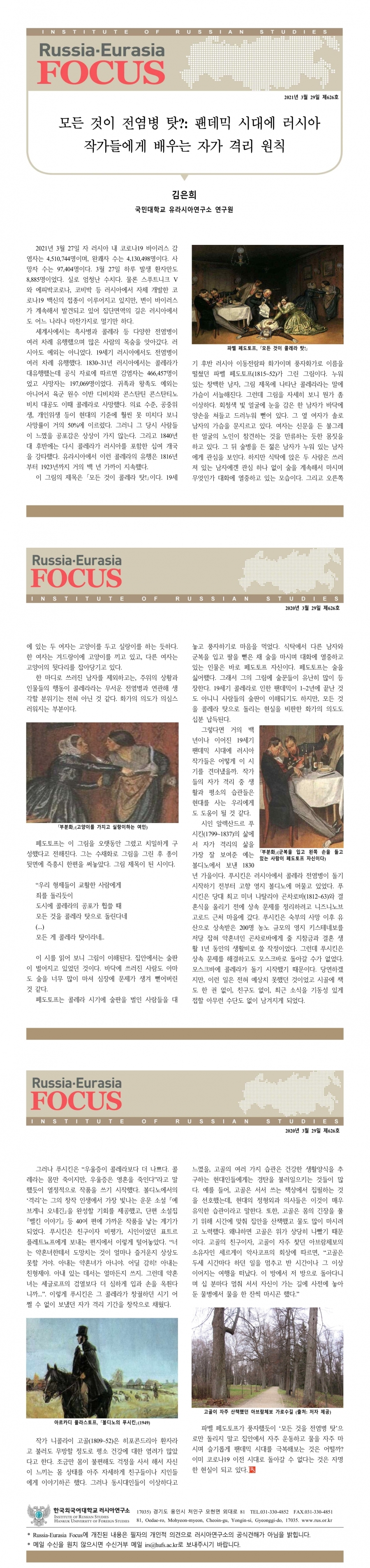 제626호 모든 것이 전염병 탓?: 팬데믹 시대에 러시아 작가들에게 배우는 자가 격리 원칙
