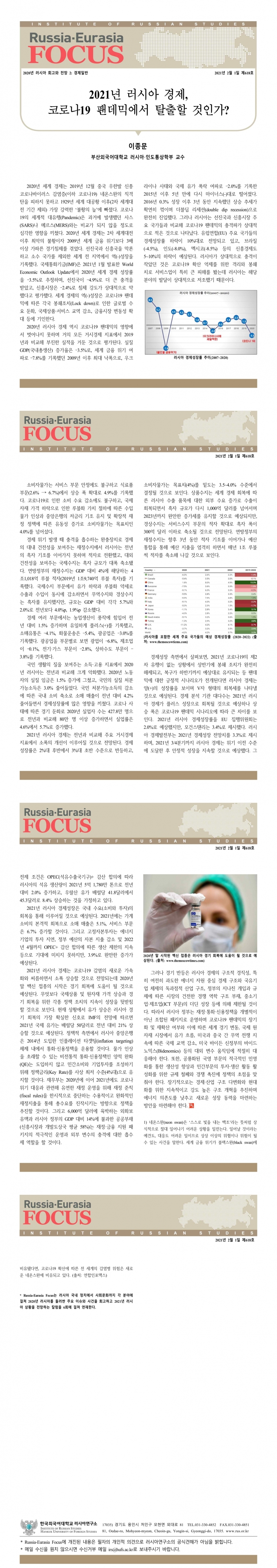 제618호 2021년 러시아 경제, 코로나19 팬데믹에서 탈출할 것인가?
