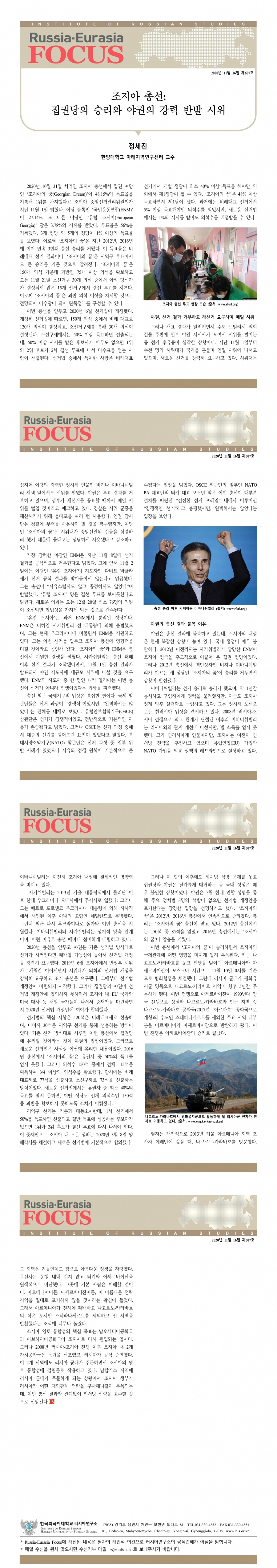 제607호 조지아 총선: 집권당의 승리와 야권의 강력 반발 시위
