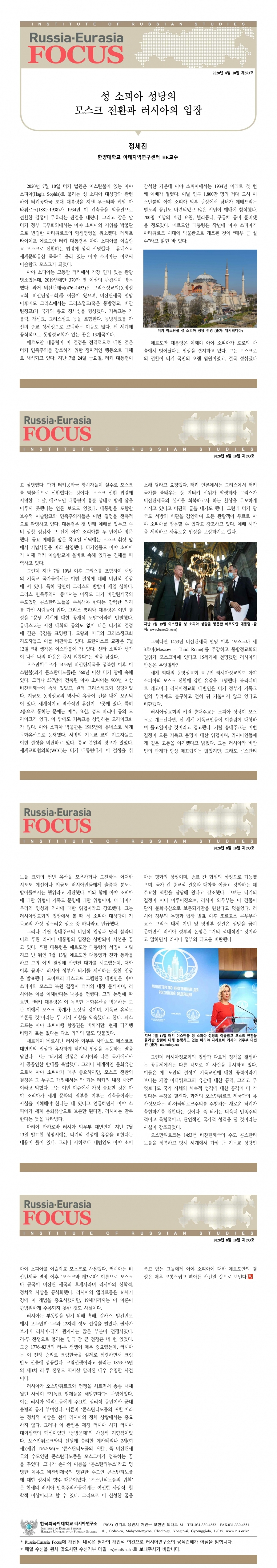 제593호 성 소피아 성당의 모스크 전환과 러시아의 입장