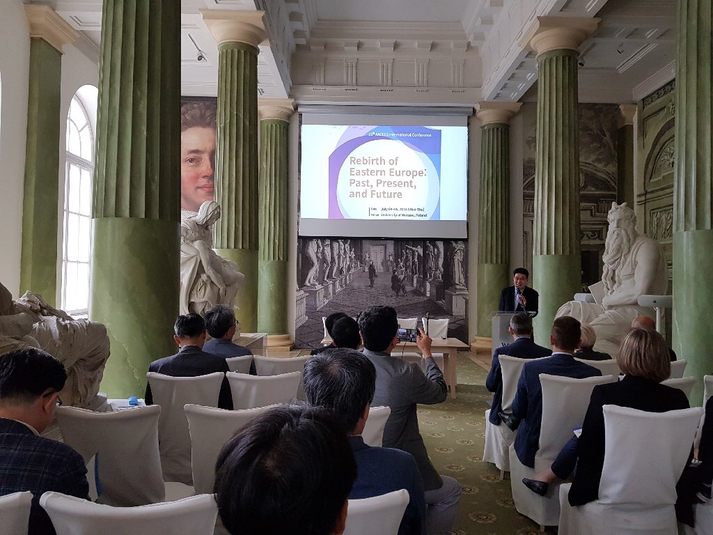 러시아연구소 소속 황성우 교수는 2018년 7월 4()~5(이틀에 걸쳐 폴란드 바르샤바 국립대학교에서 개최된 국제학술회의에서 개회식 사회와 함께 논문을 발표했다바르샤바 대학교 역사연구소아시아중동부유럽학회한국외국어대 동유럽발칸연구소가 공동으로 개최한 이번 국제학술회의는 1918년 독립국가로 재탄생한 동유럽 제 국가를 100년이 지난 시점에서 다시 조명해보자는 취지로 기획됐다학술회의 주제는 동유럽의 재탄생과거현재그리고 미래’(Rebirth of Eastern Europe: Past, Present, and Future)였다이번 국제학술회의에는 욜란타 호인스카-미카 바르샤바대학교 부총장바르토쉬 콘트이니 바르샤뱌 대학교 부학장루카쉬 니에시와프스키-스파노 역사연구소 소장 등 폴란드 측 인사들과 오성환 주 폴란드 공사김용덕 아시아중동부유럽학회장김정환 한국외국어대 동유럽대학장 등을 포함해 기조연설 포함 총 7개 세션에서 5개국 27명의 학자들이 발표했다.