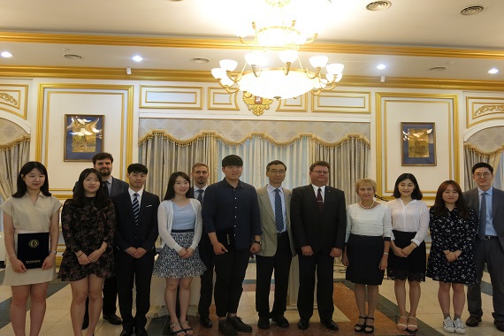 주한러시아연방대사관은 2018년 6월 26일 <제8회 전국 대학(원)생 러시아어 토론대회> 수상자 전원을 초청해 별도의 수상식을 열었다. 한국외대에서는 강덕수 부총장과 김준석 러시아연구소 HK연구교수, 러시아학과 올가 무란 교수가 참석했다.