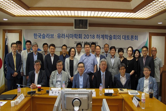 러시아연구소 소속 이지연 최우익 황성우  HK 교수들은  2018 년  6 월  16 ( 오후  2 시 한양대학교 서울캠퍼스 국제대학원 화상회의실에서 열린 한국슬라브 · 유라시아학회 대토론회에 패널로 참가했다 이지연 황성우 교수는 제 1 부  러시아는 우리에게 어떤 나라인가 ’  세션에 참가해 역사와 문화 영역에 나타난 러시아의 이미지에 대해 발표했고 최우익 교수는 제 2 부  러시아와 우리는 어떻게 접근하고 협력해야 하는가 ’  세션에 참가해 상호 인식 조사에 근거해 한러 간 협력 방안에 대해 발표했다 이번 학술대토론회에는 어학 문학 역사 등 인문학 전공자들과 정치 경제 사회 등 사회과학 전공자들을 포함해 총  20 명이 넘는 연구자들이 모여 분과학문별 프리즘을 통해 러시아에 접근해 가는 방식을 선보였다 .