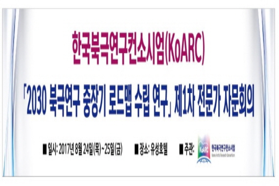 한국북극연구컨소시엄 제1차 전문가 자문 회의가 2017년 8월 24~25일 대전 유성호텔에서 열렸다. 이날 회의에는 3개 분과위원장, 간사, 세부분야별 집필진, 사무국 관계자 등 23명이 모였다. 참석자들의 주요 소속 기관은 극지연구소, 한국해양수산개발원, 선박해양플랜트연구소, 극지기술연구회, 한국가스공사, 한국외국어대학교, 영산대학교, 인하공전, 동의대학교 등이다.