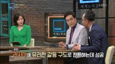 우리 연구소 장세호 HK연구교수는 지난 9월 10일 방송된 KBS1 TV <특파원 보고 세계는 지금>(19회)에 출연, 블라디보스톡 “동방경제포럼”과 “G20 정상회담”을 전후로 국제적 존재감이 부각된 러시아의 위상을 밀착 조명하였다. 국제무대에 화려하게 복귀한 푸틴의 외교 전략과 급변하는 국제정세에 대응하는 러시아의 대외적 실용노선이 장세호 교수 특유의 날카롭고 명쾌한 시각으로 분석되었다.