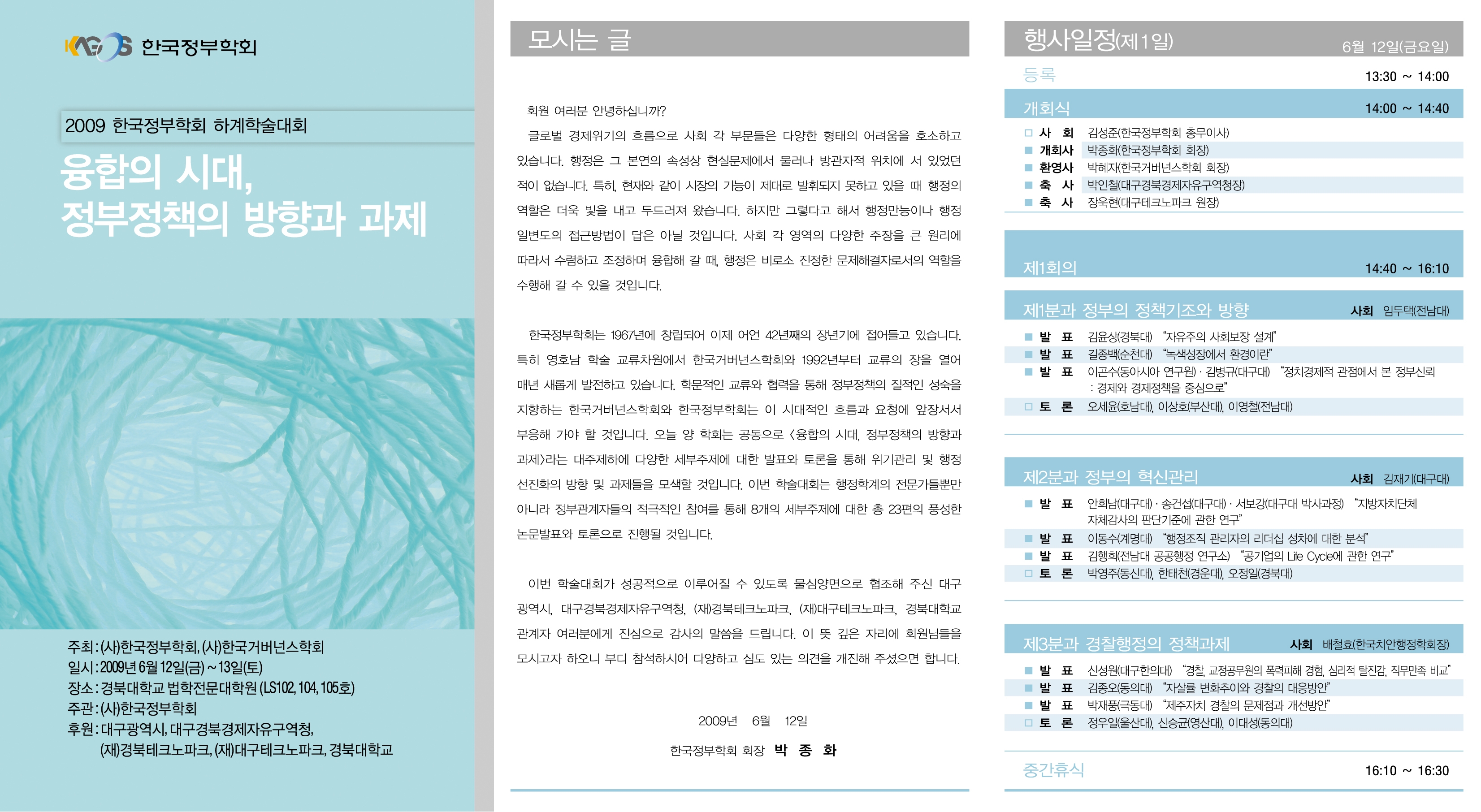 2009년 하계학술대회는 한국정부학회와 한국거버넌스학회가