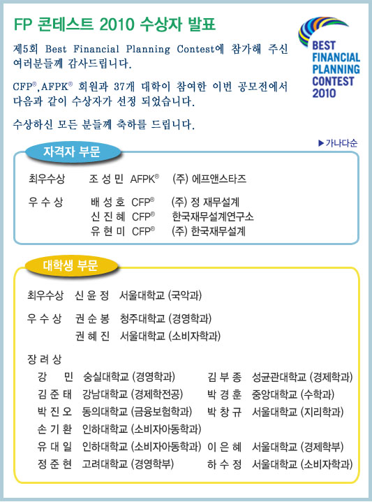 2010 Best Financial Planning Contest 수상자 발표